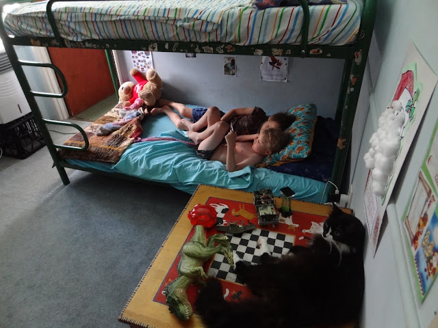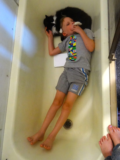 And then on the way home, we stopped in at the Emporium for last minute supplies, and got stopped on the way by Anna and a friend, with a unique proposition. This gorgeous young womans lover was away on a trip in New York, and rather than the same old love letters sent between them, she wanted to stretch the parameters. So she had a poem that he'd created and written it on paper, and was asking people who exemplified love to hold the sheets with his poem, so she could take photos of them, and send him a love letter photo collage of his heart felt poem. She got us all arrayed on the bull bar of Flo the Coaster, holding the sheets of poem in front of us, and then took one of just me and Currawong on the step of our bus. And a bit of a crowd rocked up to oooh and ahhh bout the crazy family posed for a photo. She'd spent the day taking photos with people who Anna introduced her to, Anna being the perfect person for the job, cause she's so well connected on a heart level with so many folk in town.